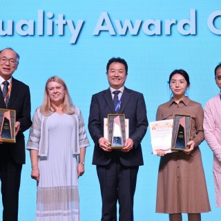The award ceremony took place in conjunction with the 2025 APQN Annual Academic Conference & Annual General Meeting in Hong Kong on November 21, 2025. NIAD-QE President HATTORI Yasunao and representatives from EQEA and KCUE received the trophies from Dr. Galina Motova, President of APQN and Dr. Jagannath Patil, Chair of APQN Quality Award committee at the ceremony.